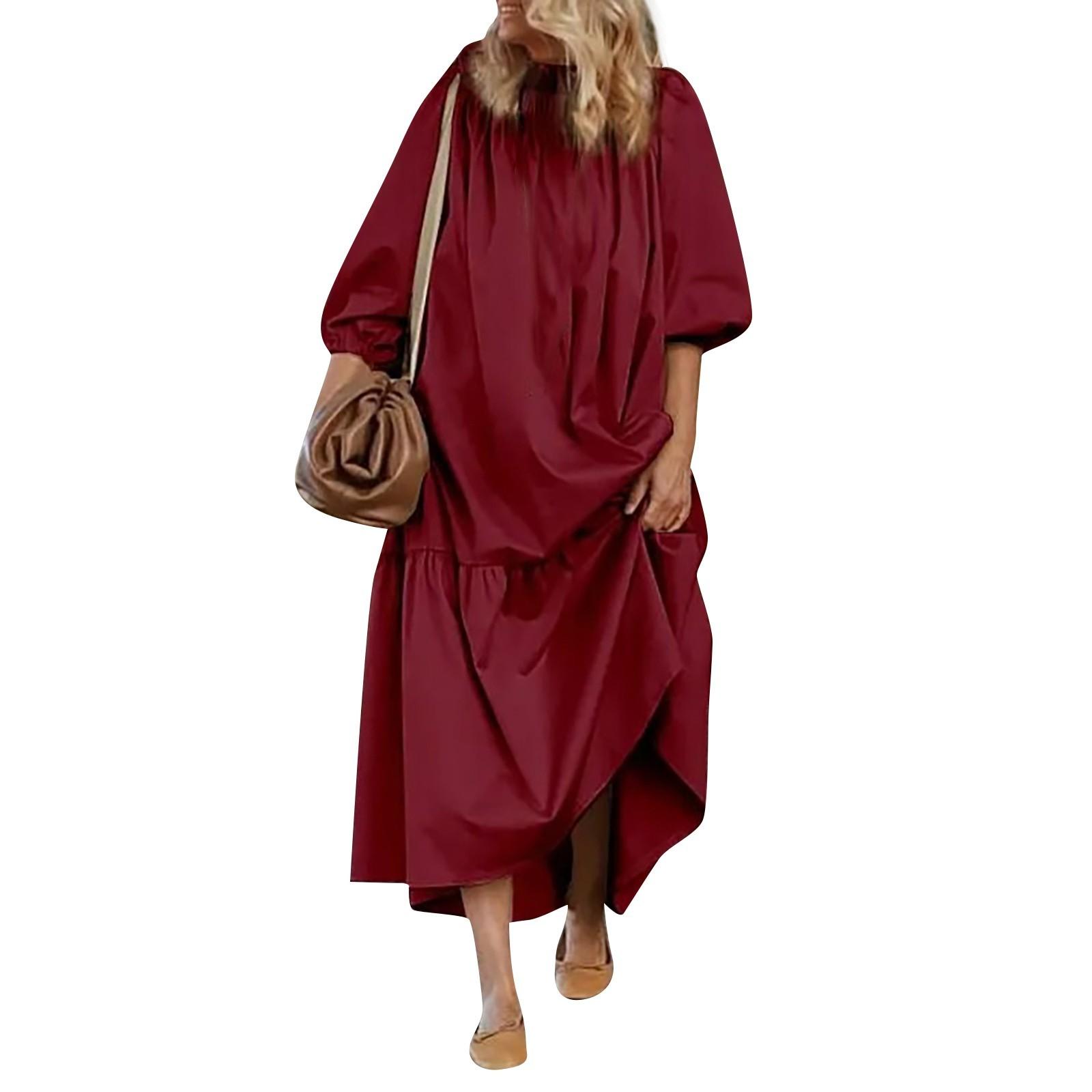 Женское новое летнее свободное повседневное сексуальное длинное платье с открытыми плечами и рукавами-фонариками XL винный