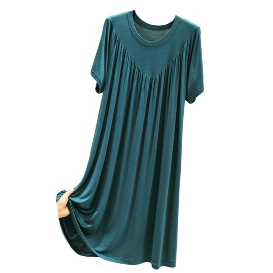 Женское ночное платье, плиссированное тонкое платье с круглым вырезом и короткими рукавами, свободное спальное однотонное платье до колена, одежда для сна, домашнее платье, женская одежда XL