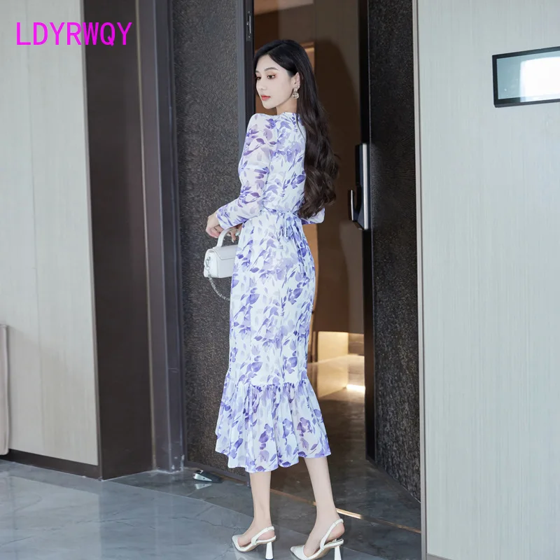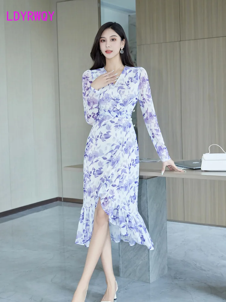 Женское облегающее Сетчатое платье-годе с V-образным вырезом и длинным рукавом, осень 2023