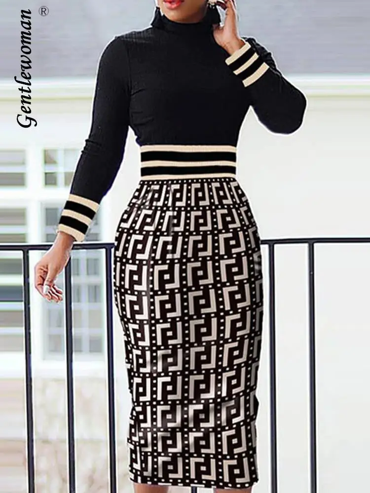 Женское облегающее длинное платье с принтом, Осень-зима, элегантное тонкое платье-миди с рисунком, женское повседневное офисное платье