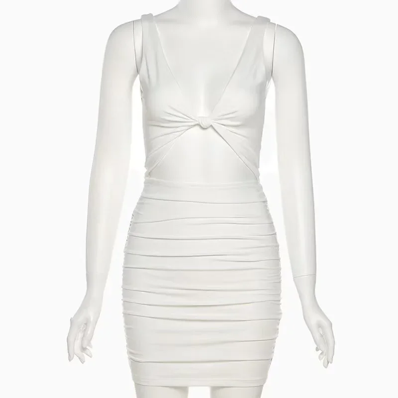 Женское облегающее мини-платье без рукавов, с глубоким V-образным вырезом и оборками