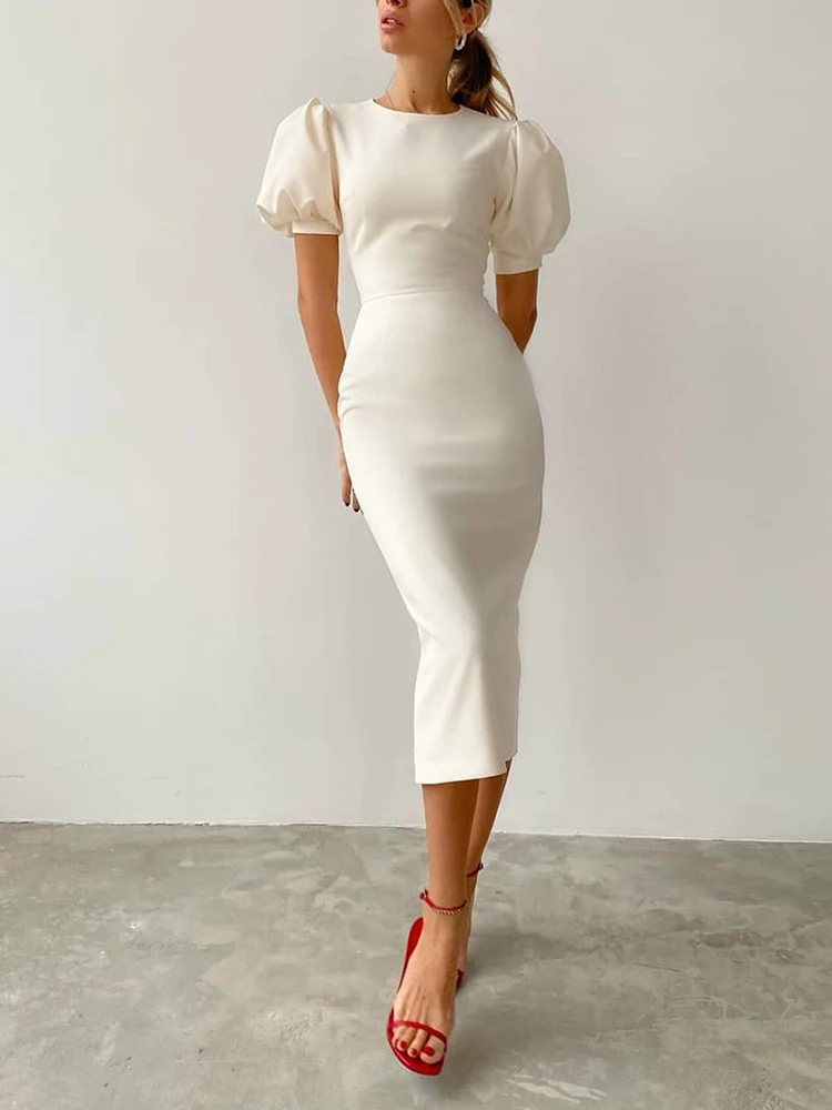 Женское облегающее платье-миди с коротким рукавом и круглым вырезом