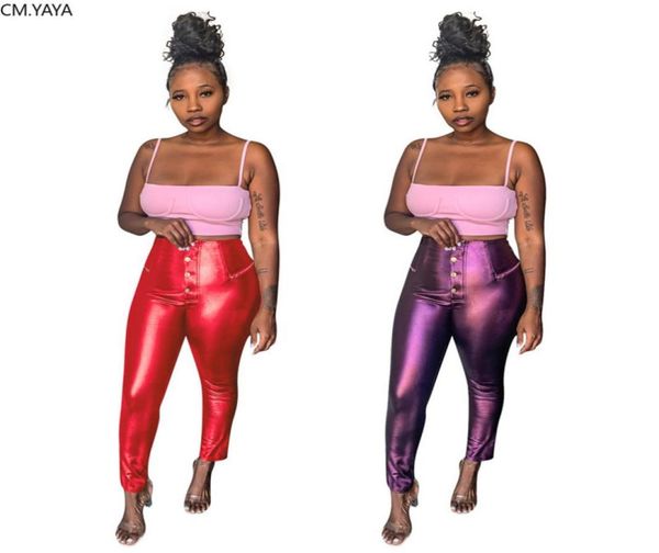 women pants spring high waist button pu leather night club wear solid color ankle length leggings women3463291, Black;white