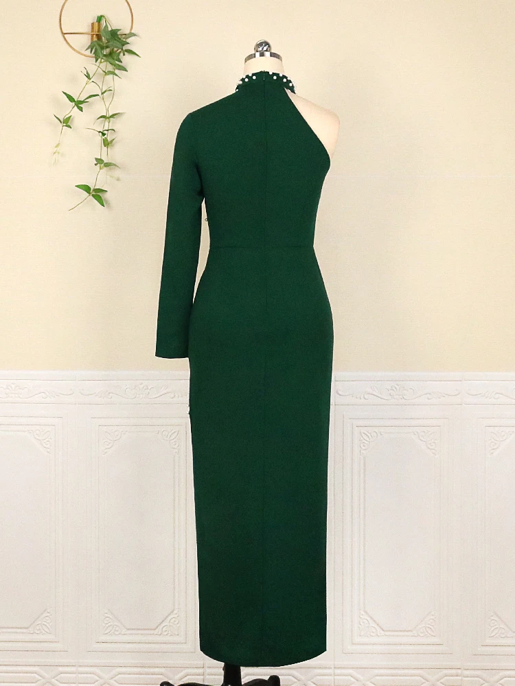 Женское облегающее платье на одно плечо, с длинным рукавом