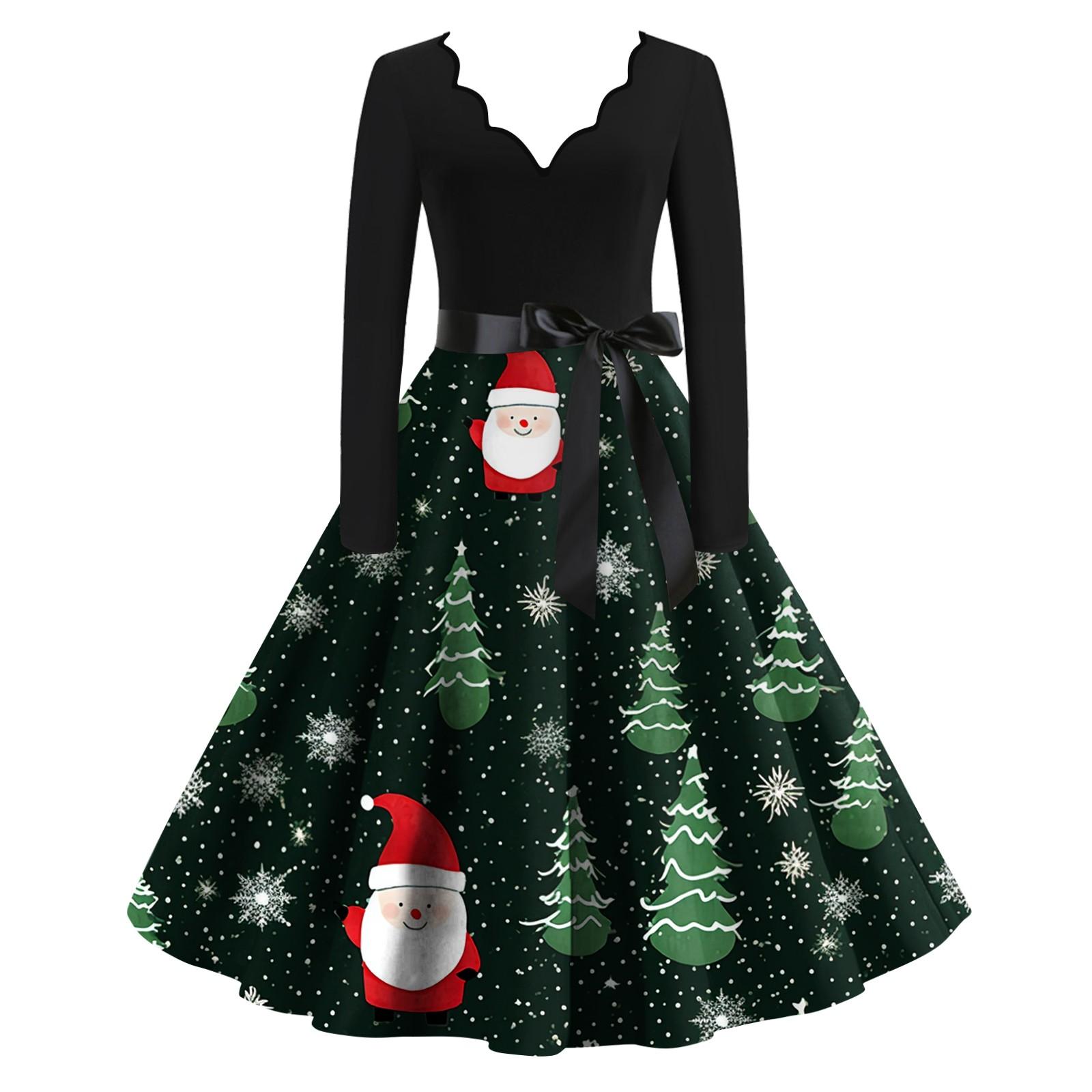 Женское облегающее платье свободного кроя с длинными рукавами и принтом рождественской елки и снеговика S зелёный