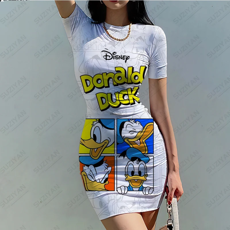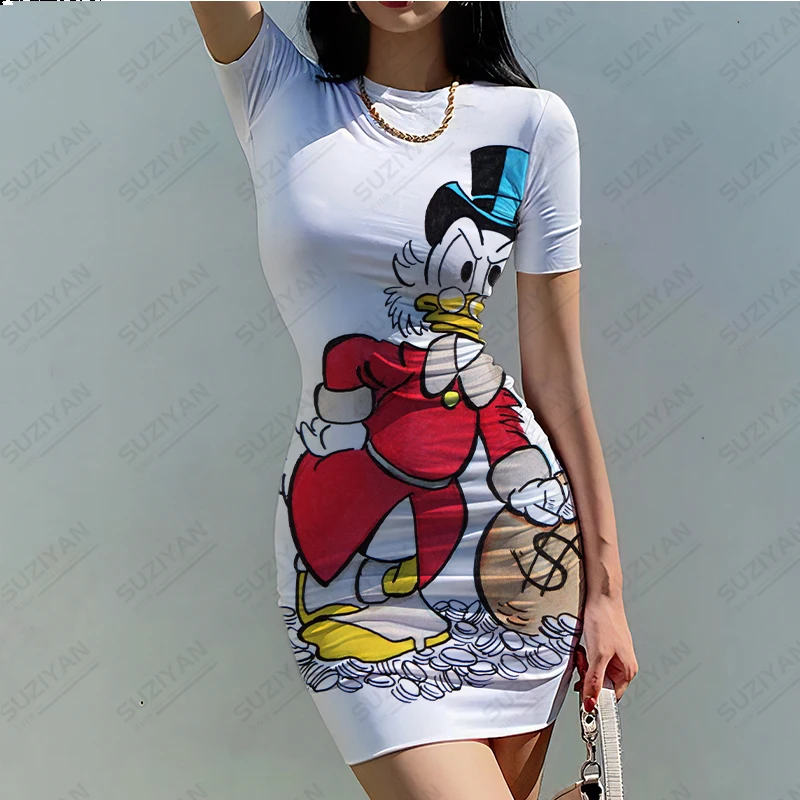 Женское облегающее платье с круглым вырезом, коротким рукавом и 3D-принтом