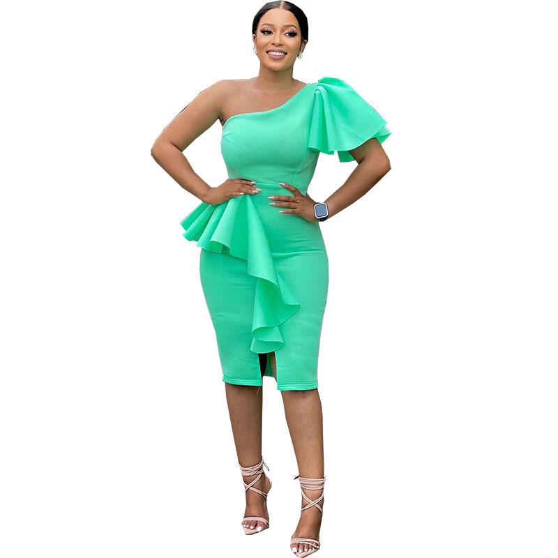 Женское облегающее платье с открытыми плечами и подчеркивающей талию, профессиональный стиль 2023 года XXL зелёный