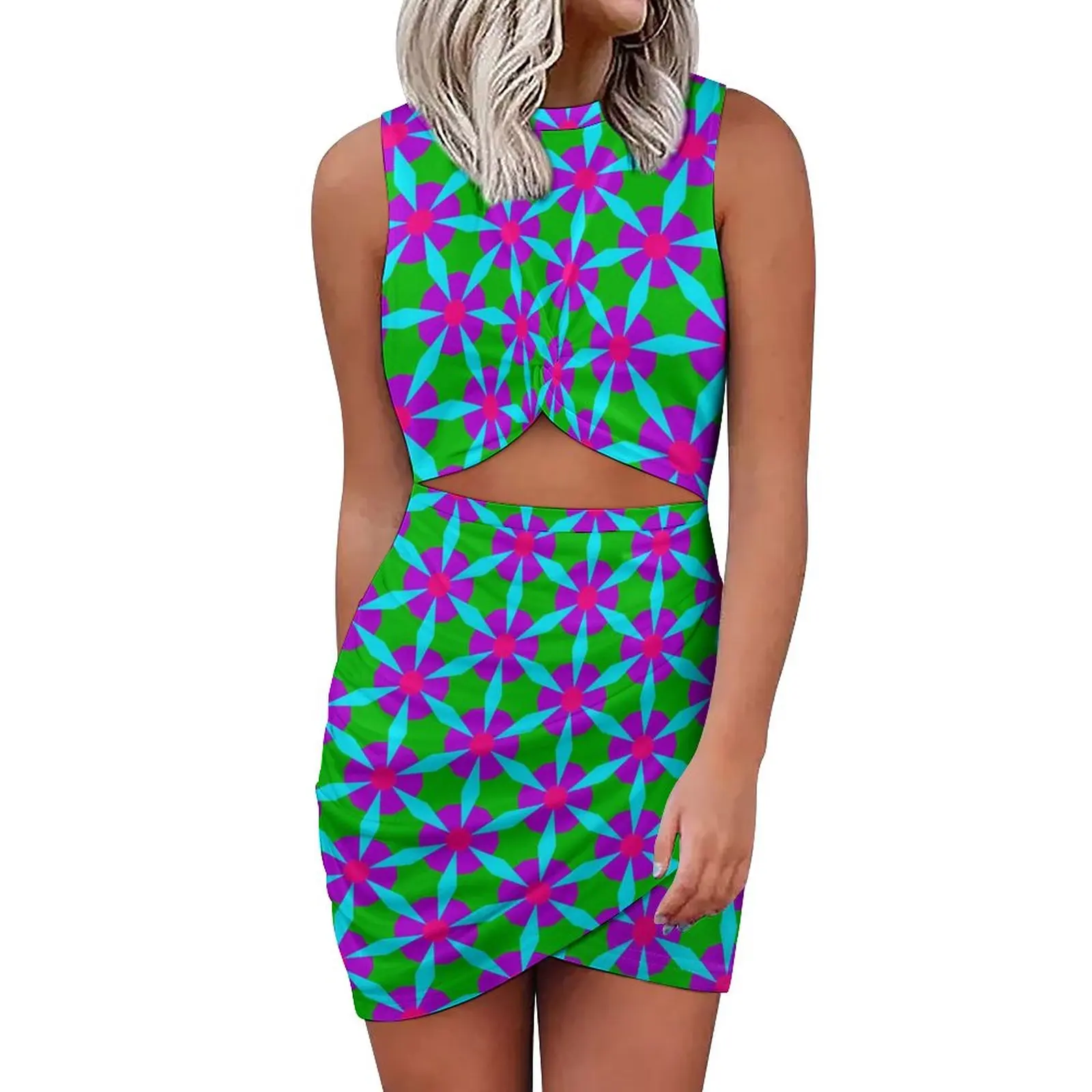Женское облегающее платье с цветочным принтом, летнее ажурное платье большого размера с цветочным принтом