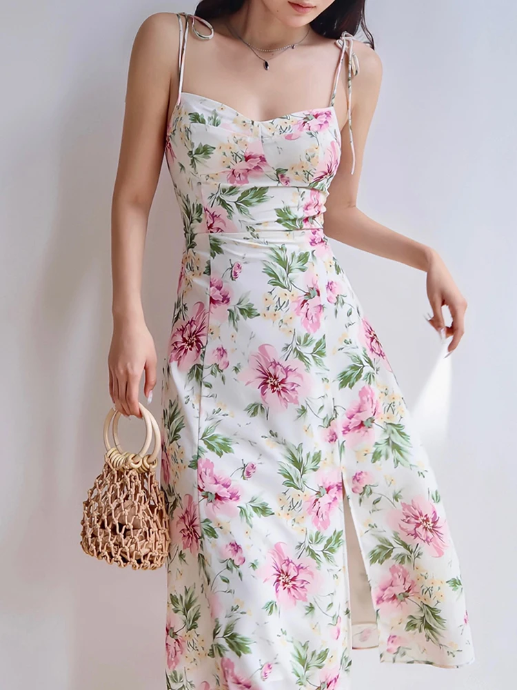 Женское облегающее платье с цветочным принтом, с открытой спиной и разрезом