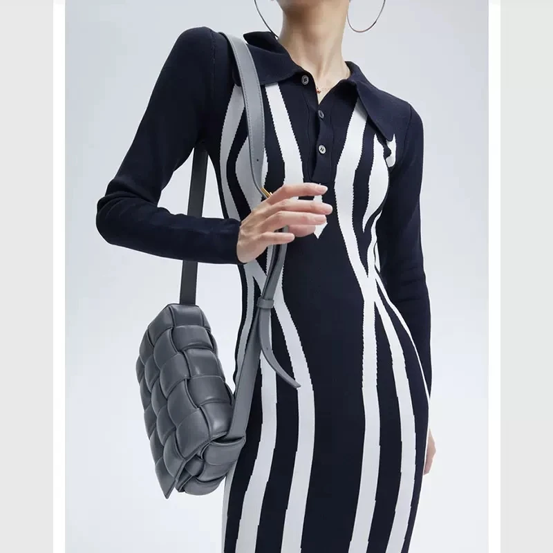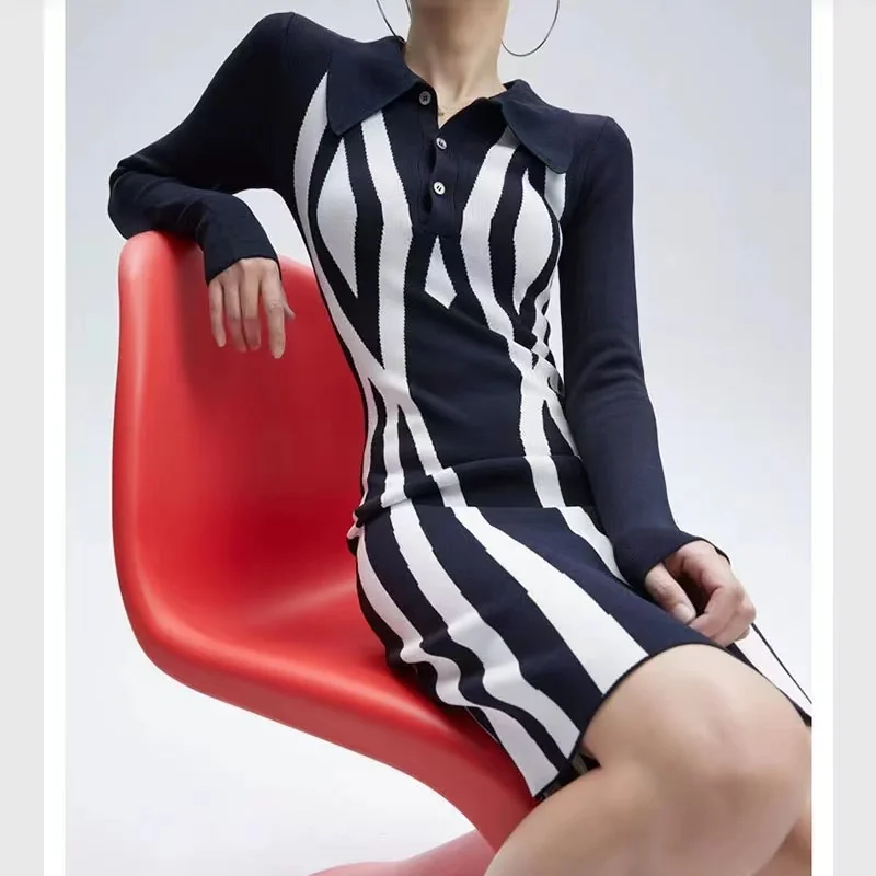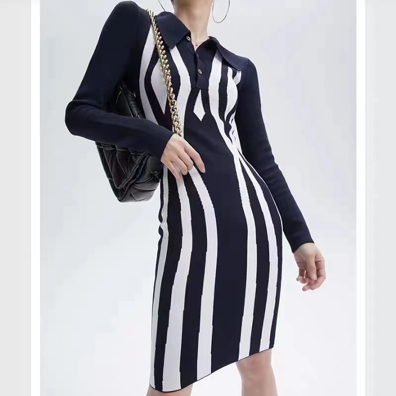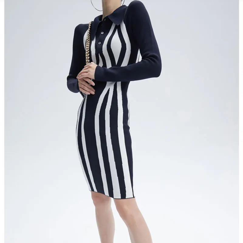 Женское облегающее платье-футляр на пуговицах, с длинным рукавом и отложным воротником