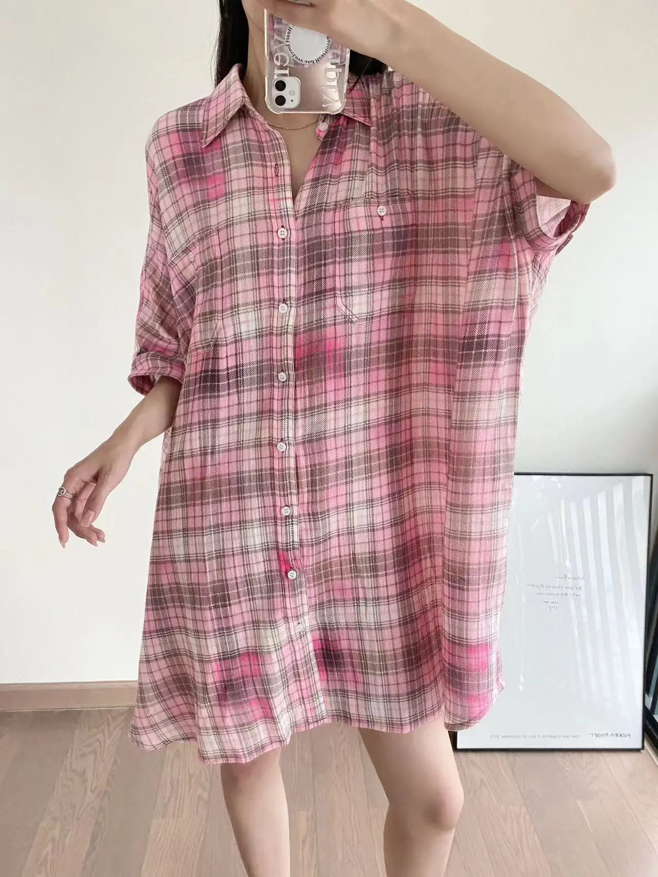 Женское однобортное платье в клетку, Элегантное повседневное платье свободного покроя с рукавом до локтя, лето 2023