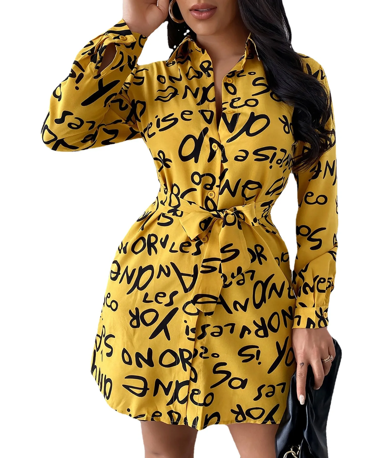 Женское однобортное платье-рубашка с длинным рукавом, свободного покроя