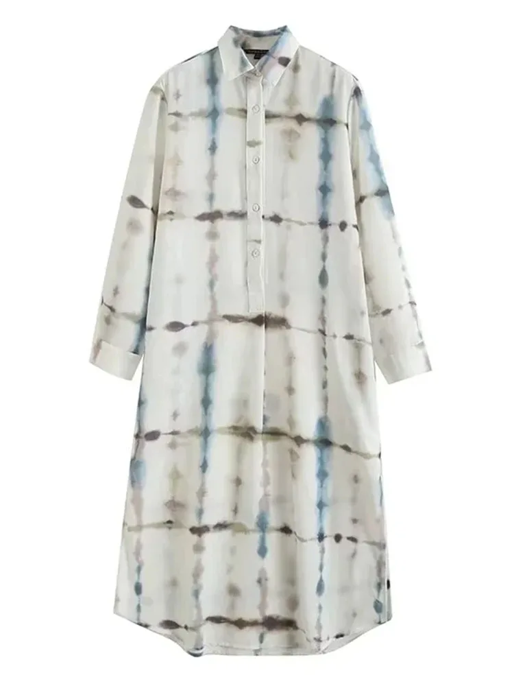 Женское однобортное платье-рубашка с отложным воротником и длинными рукавами