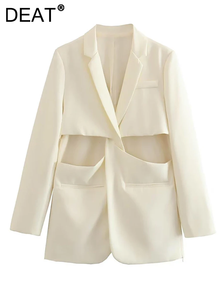 Женское однотонное пальто с отложным воротником DEAT, офисное повседневное пальто с длинным рукавом и перекрестными вырезами, 13 db3120, осень 2023