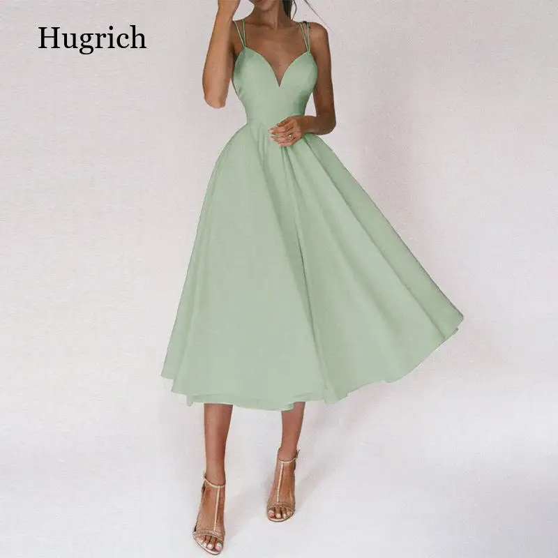 Женское однотонное платье на бретелях-спагетти, без рукавов, с открытой спиной