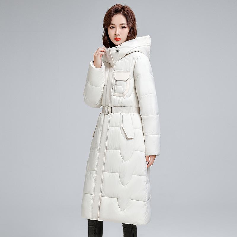 Женское однотонное хлопковое пальто больших размеров, зимняя утолщенная хлопковая куртка длиной до колена с капюшоном, длинная куртка 4XL бежевый