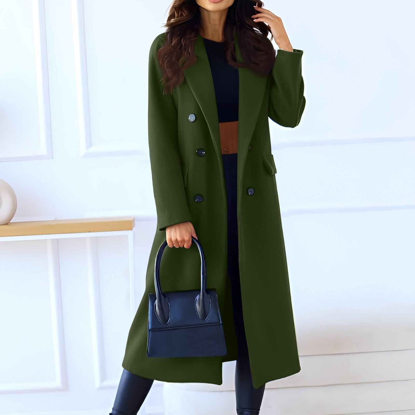 Женское однотонное шерстяное пальто с длинными рукавами и лацканами L армия зеленый