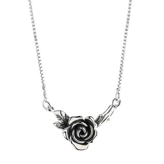 Женское ожерелье Винтажное Цветочное Черная Роза Нержавеющая Сталь Старый Дизайн Украшение на Шею Серебристый Цвет Гладкий Край Подвеска Роза Ожерелье Вечеринка Ювелирные Изделия серебряный