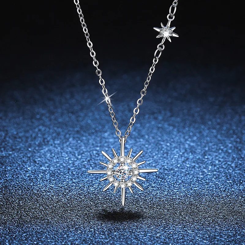 Женское ожерелье из серебра 100% пробы с подвеской в виде шестигранной звезды
