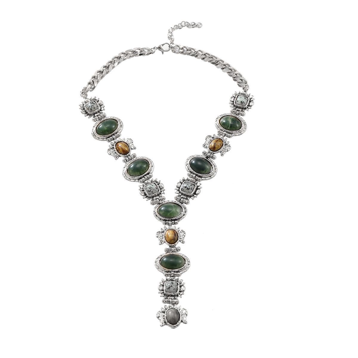 Женское ожерелье-цепочка в стиле ретро 2024 года с натуральным камнем серебряный