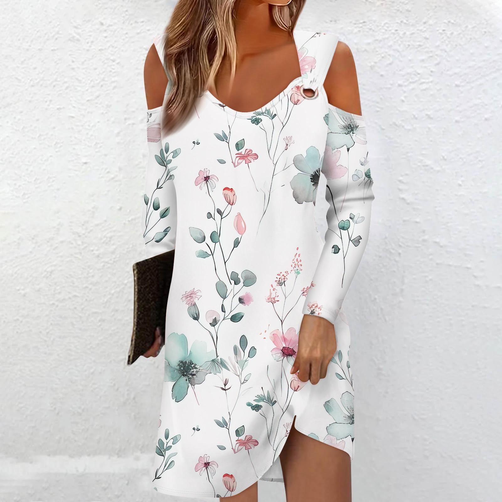 Женское осеннее и зимнее повседневное модное длинное платье с v-образным вырезом и длинным рукавом с принтом и карманом XL белый
