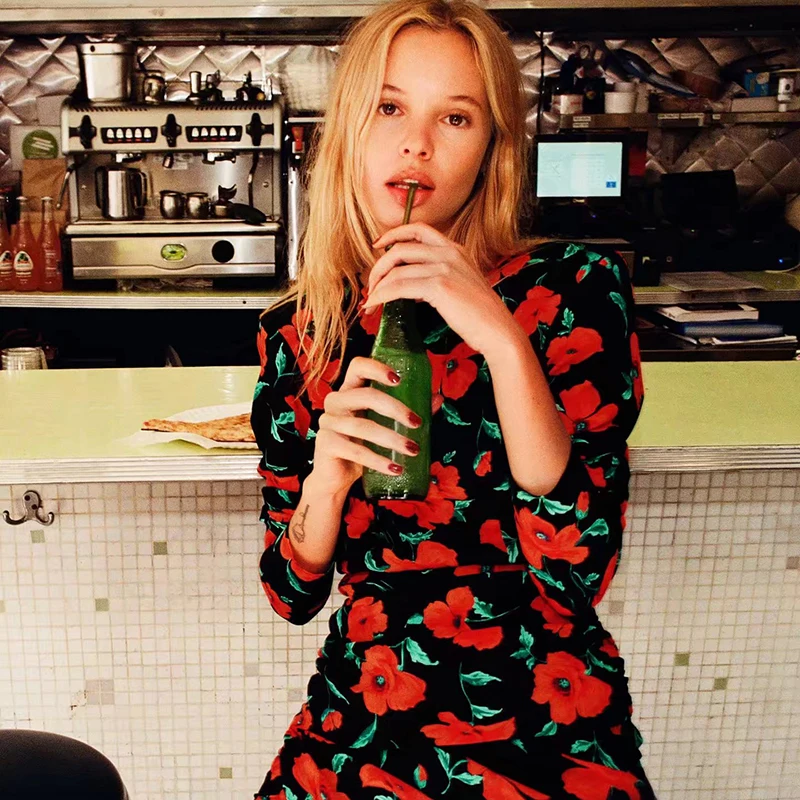 Женское осеннее новое универсальное платье Unizera 2021 Za с круглым вырезом, открытой спиной и цветочным принтом, женское модное платье с длинным...