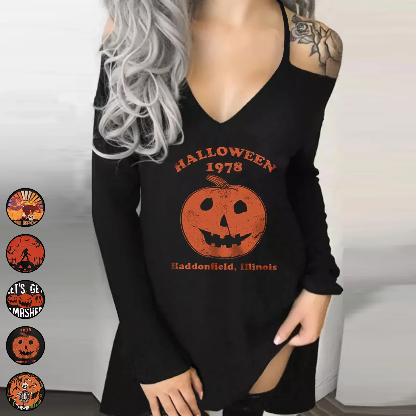 Женское осеннее платье с длинным рукавом и принтом в виде тыквы