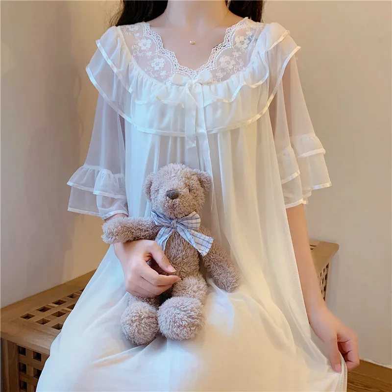 Женское осеннее платье с оборками, сексуальный Длинный пеньюар, винтажная Женская одежда для сна в стиле принцессы, ночная рубашка в японск...