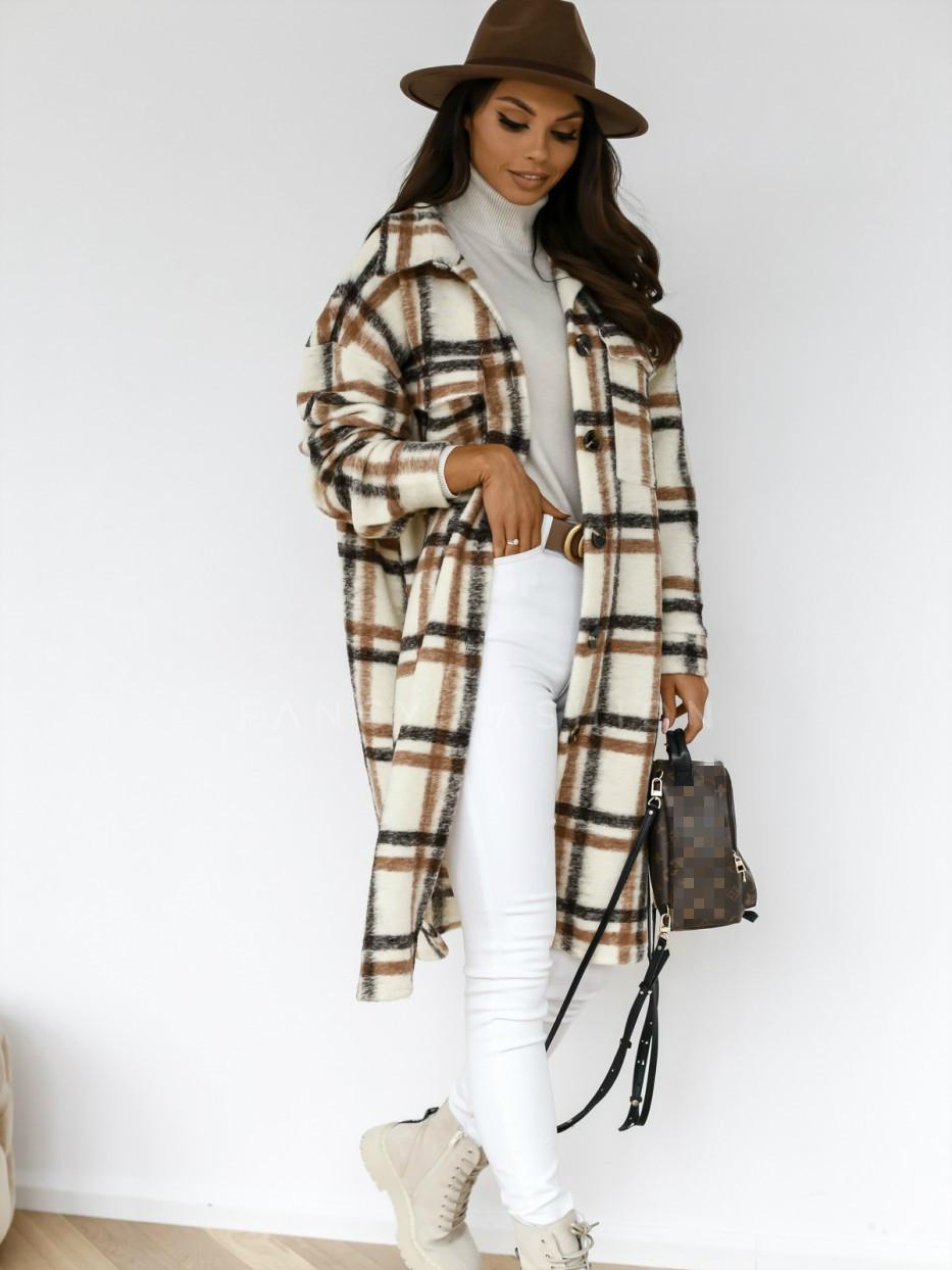 Женское осенне-зимнее клетчатое шерстяное пальто, длинная куртка, пальто, элегантная женская верхняя одежда XL коричневый