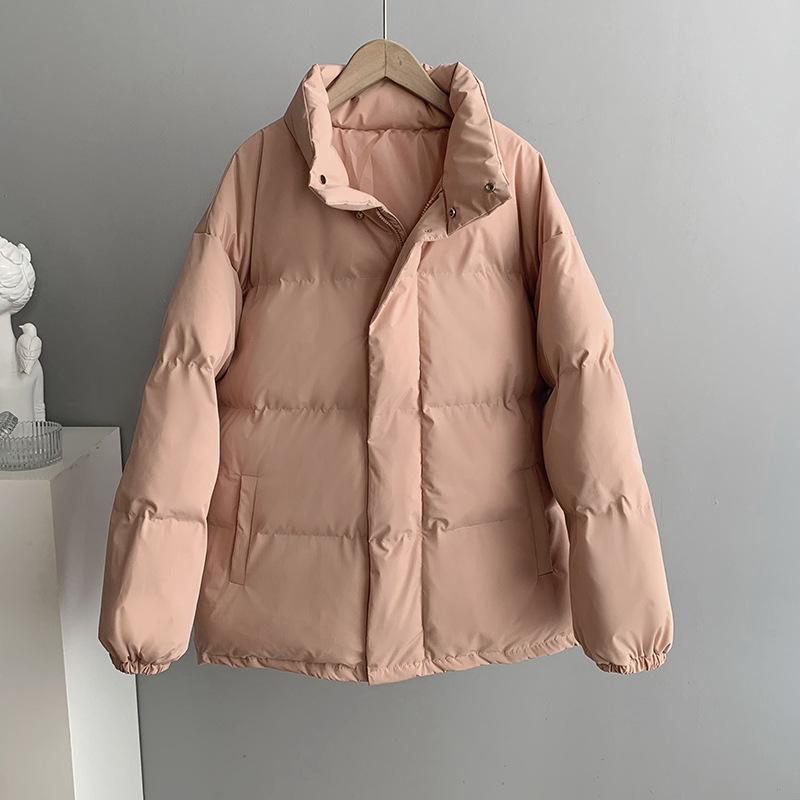 Женское осенне-зимнее пальто с воротником-стойкой и длинным рукавом, однотонное стеганое пальто на молнии, свободная универсальная куртка L розовый