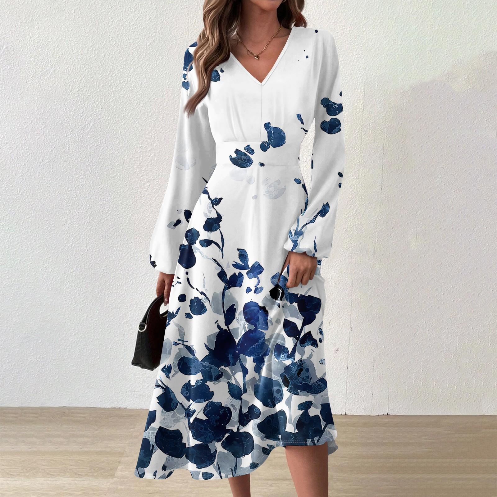 Женское осенне-зимнее повседневное модное длинное платье с v-образным вырезом и длинным рукавом с принтом M