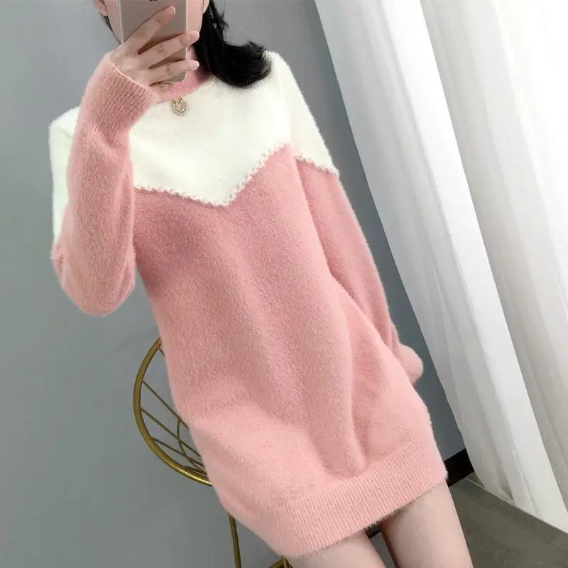 Женское осенне-зимнее трикотажное платье-свитер с длинным рукавом, из искусственной норки и кашемира, Y922