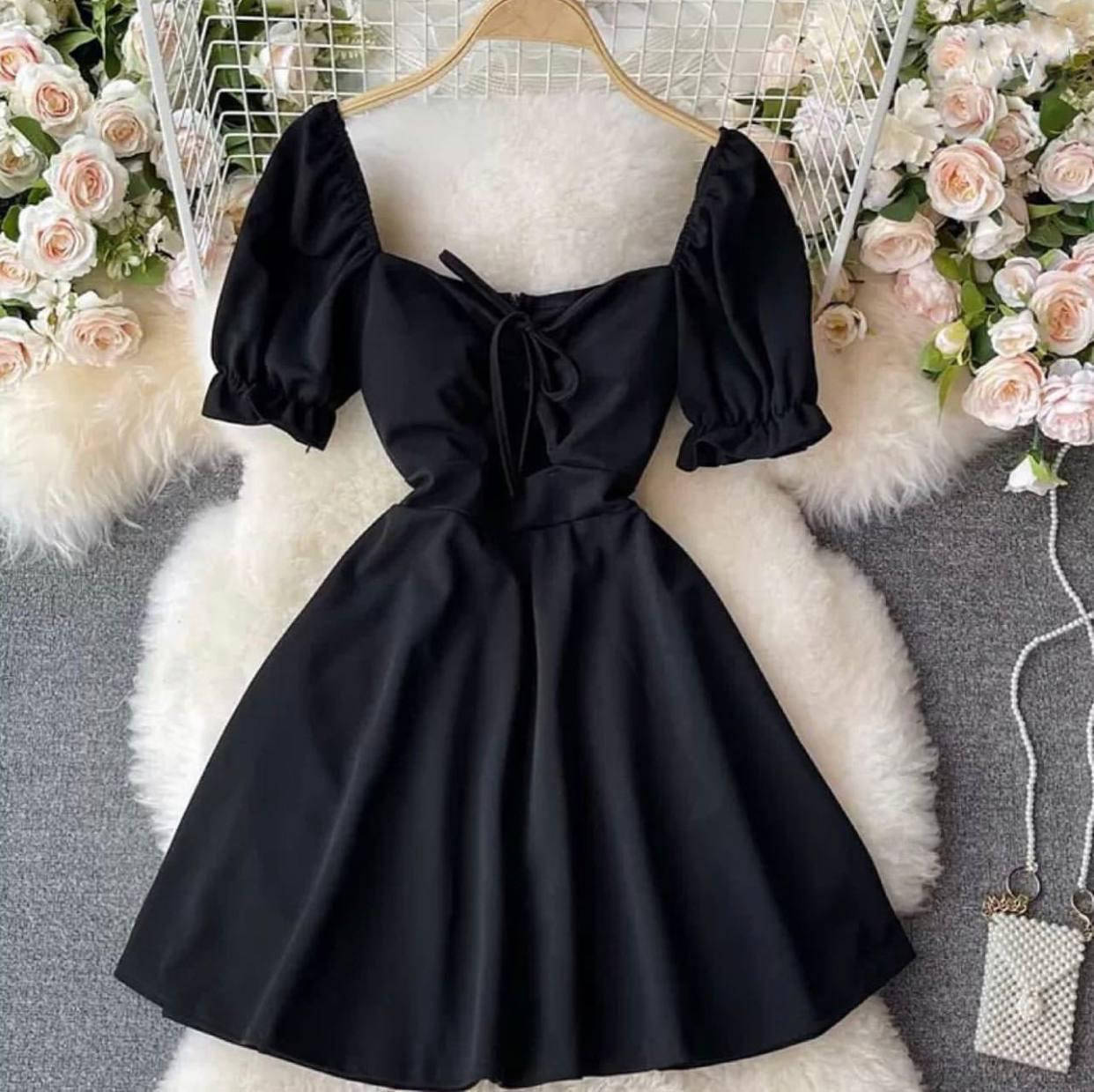 Harajuku Vintage Big Bow Dress Solid Color Short Sleeve Dresses Female Japanese High Waist Minimalistic Loose Fioor-Length