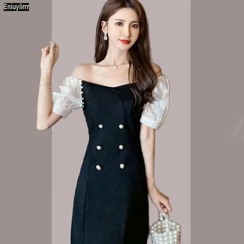 Женское офисное мини-платье с открытыми плечами и пуговицами, летнее вечернее прозрачное Сетчатое сексуальное богемное облегающее маленьк...