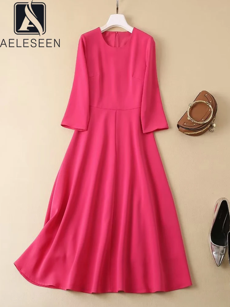 Женское офисное платье AELESEEN, осенне-зимнее платье с длинным рукавом розового и красного цвета, элегантные вечерние платья для отдыха, 2022