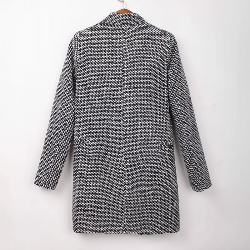 Женское офисное шерстяное пальто, классическое клетчатое пальто на одной пуговице с воротником с отложным воротником, Длинная зимняя куртк...