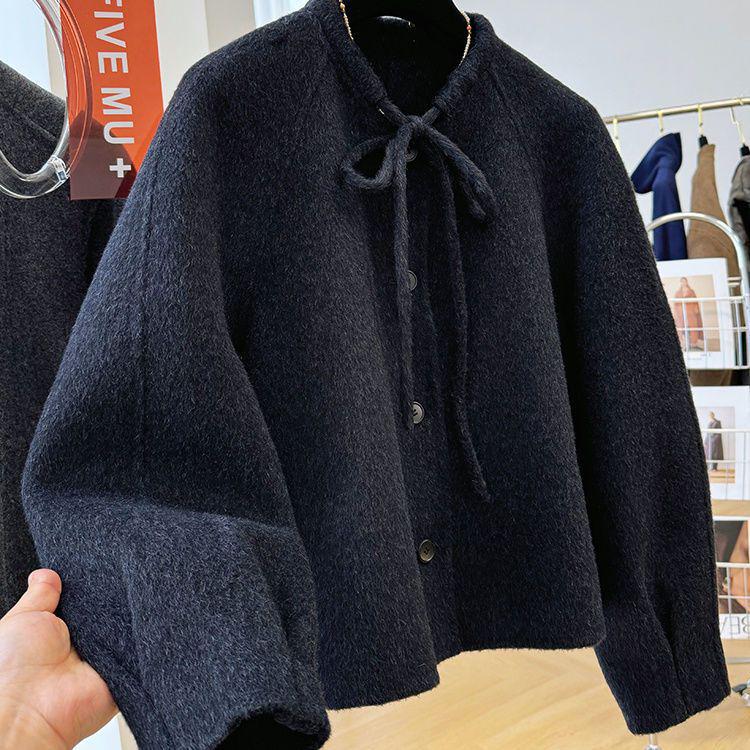 Женское пальто из смесовой шерсти в корейском стиле - новая коллекция Осень/Зима, шикарное и элегантное, маленький размер. 3XL чёрный