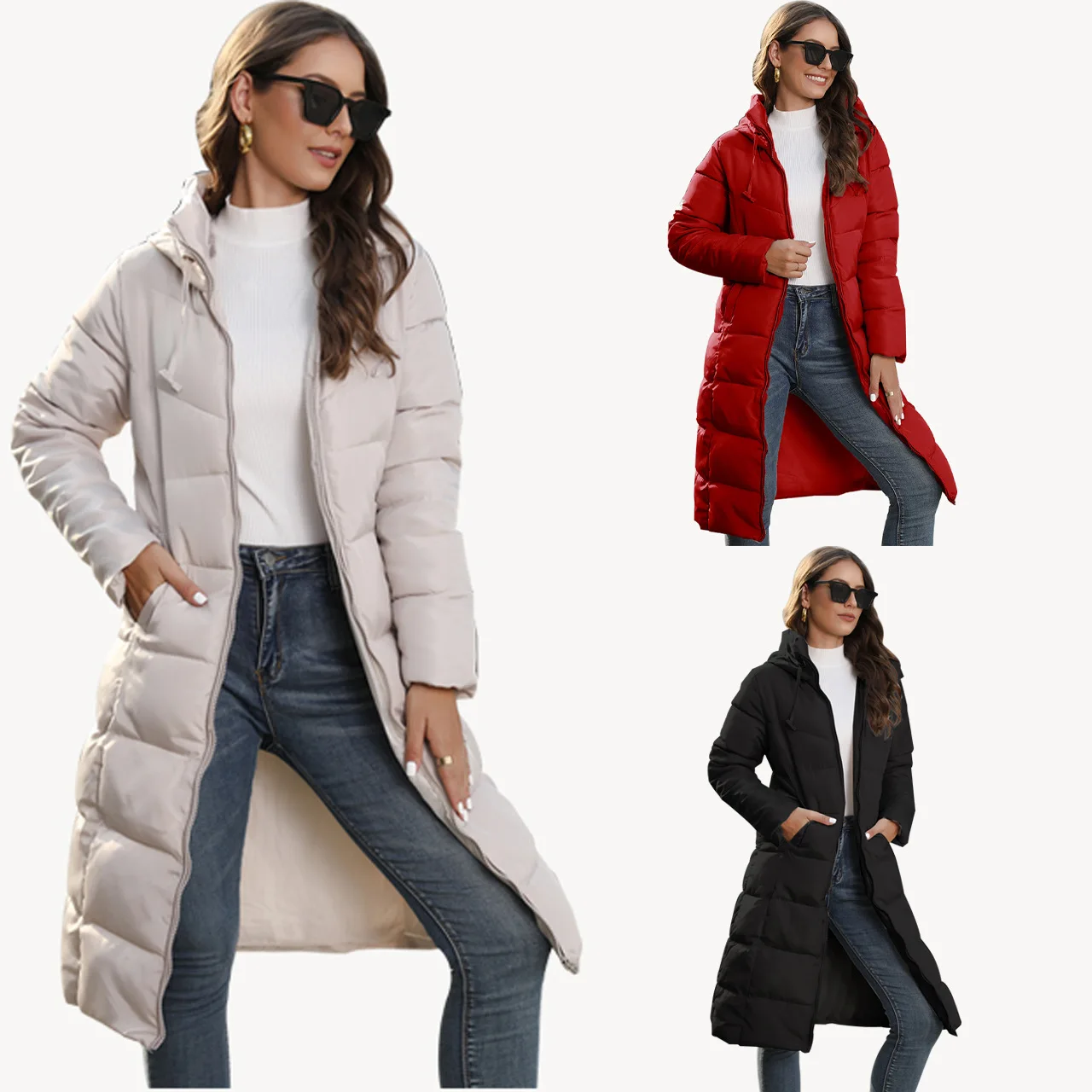 Женское пальто 2023, зимнее женское хлопковое пальто с капюшоном, женское облегающее хлопковое пальто средней длины, теплое пуховое хлопковое пальто