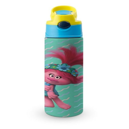Trolls Small Water Bottle for Kid 12oz Insulated Bottles with Straw Lid Stainless Steel Tumbler Vacuum Cup Thermal Bottles