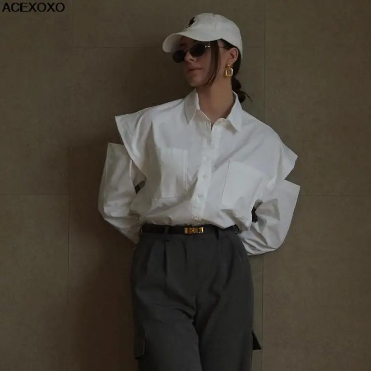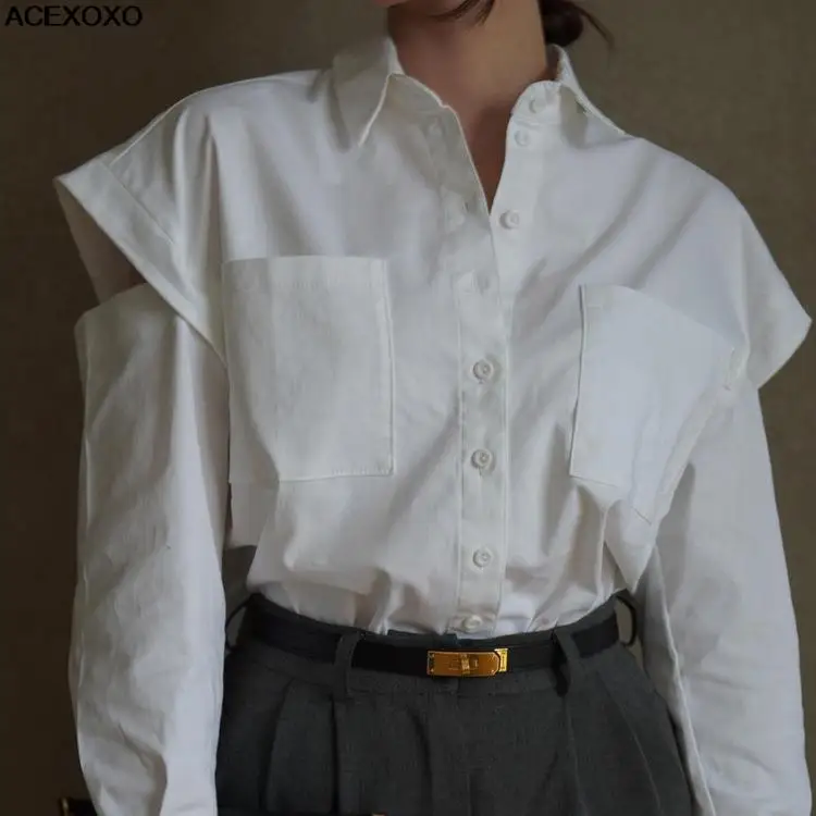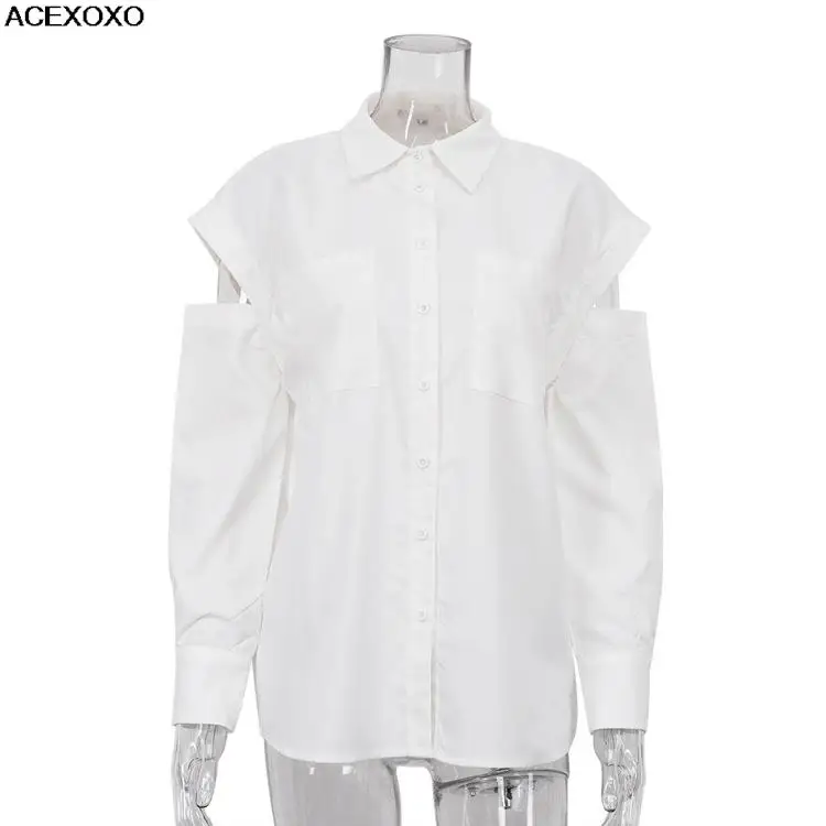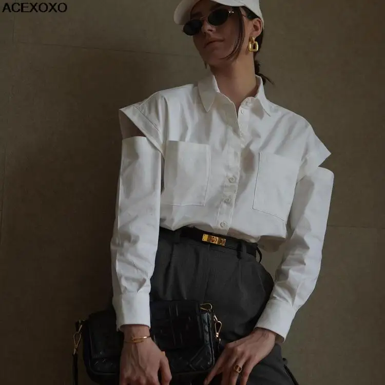 Женское платье, Новинка лета 2023, белая рубашка, модная женская рубашка с длинными рукавами и вырезами