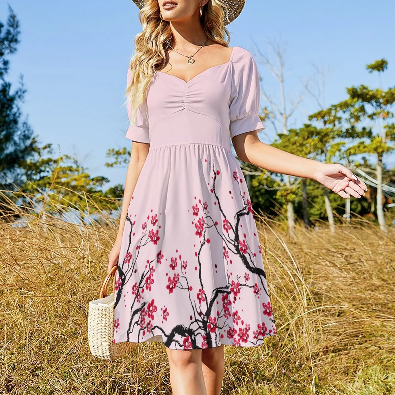 Женское платье без рукавов, Элегантное летнее платье с цветами вишни, женская одежда, Бандажное платье, 2024