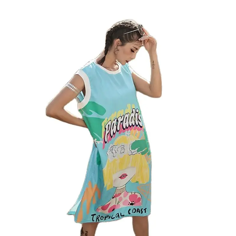 Женское платье без рукавов, свободное уличное Платье До Колена с забавным принтом, лето 2021