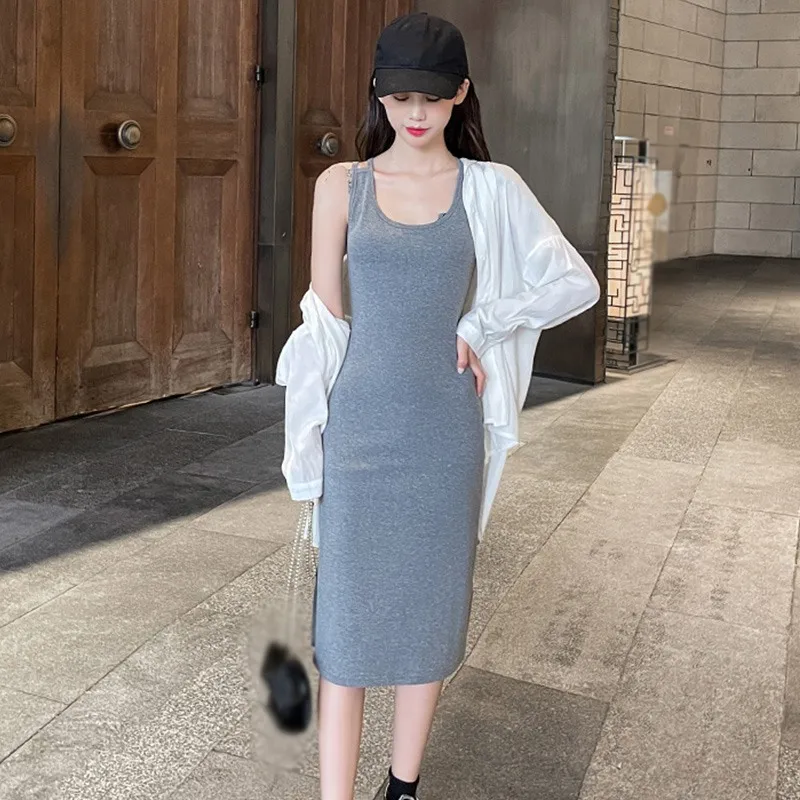 Женское платье без рукавов, платье средней длины со слоями в Корейском стиле