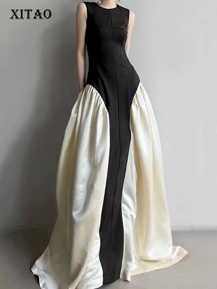 Женское платье без рукавов XITAO, модное летнее платье-жилет с цветным блоком и большим подолом, модель WLD11498