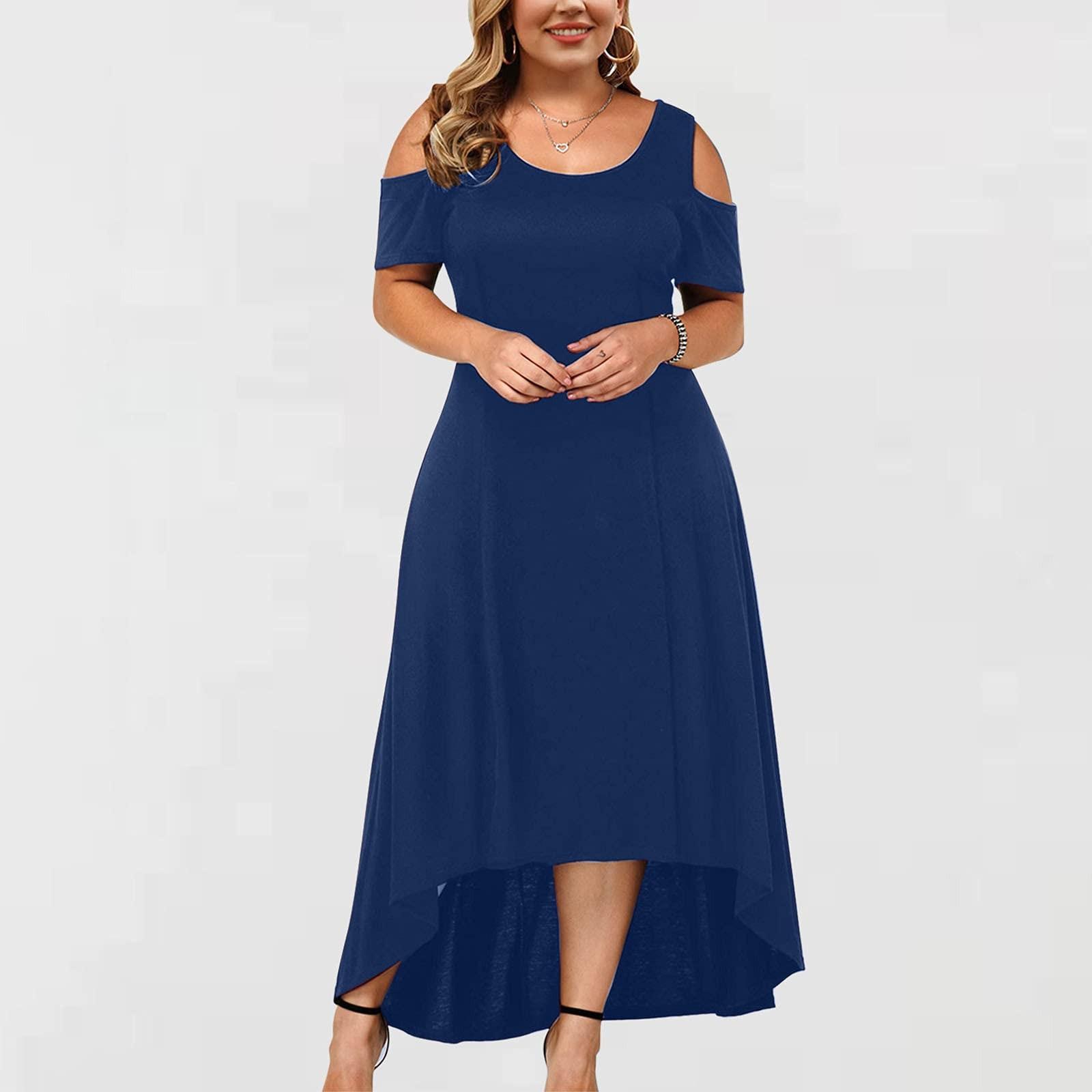 Женское платье больших размеров с круглым вырезом и коротким рукавом с открытыми плечами, сплошное цветное платье XXXXL