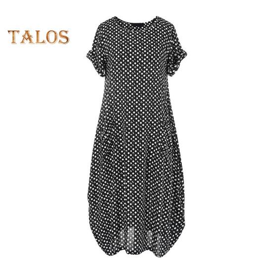 Женское платье больших размеров с принтом в горошек в стиле бохо, платье макси для отпуска с круглым вырезом, короткими рукавами и карманами, пляжное платье для путешествий XL чёрный