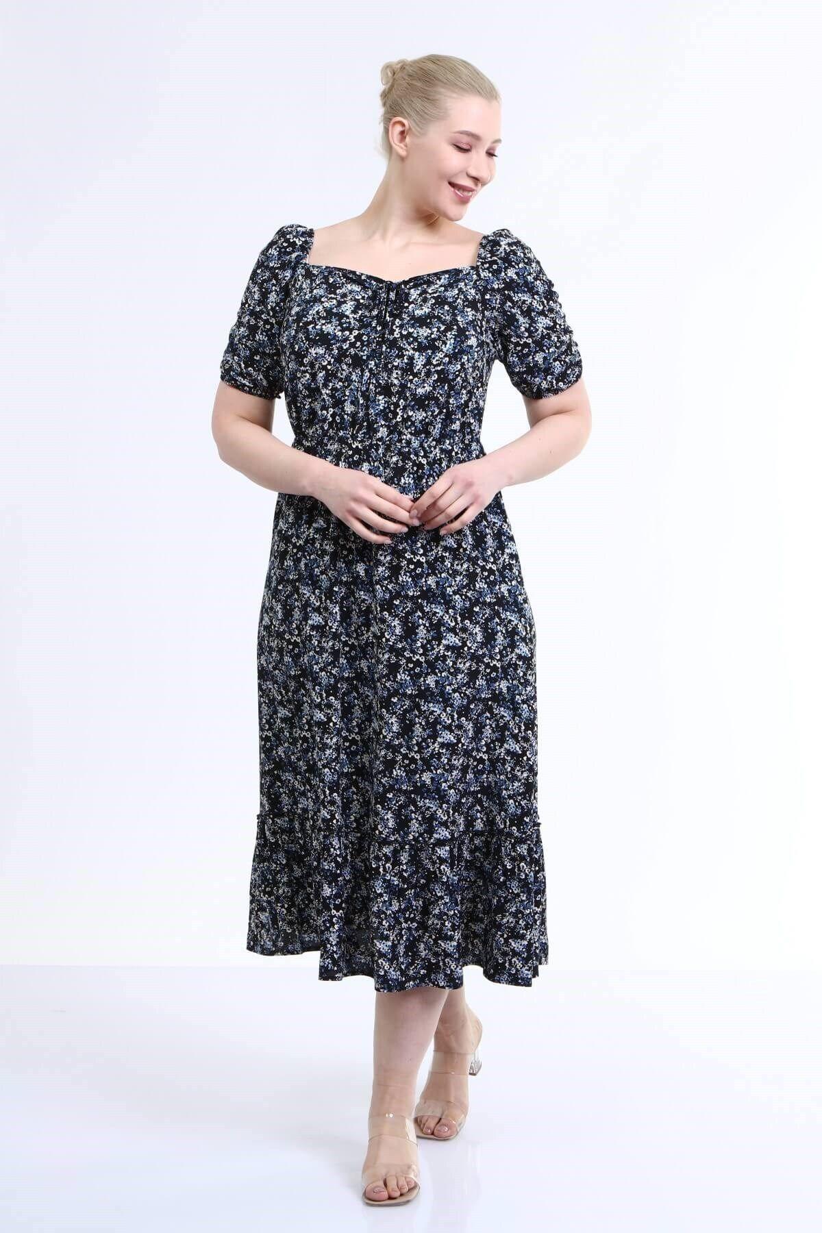 Женское платье большого размера с воротником и детальными рукавами принцессы L