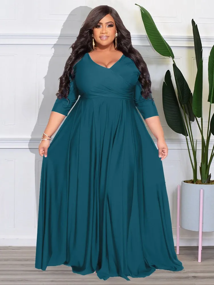 Женское платье в пол ZJFZML, однотонное платье с глубоким V-образным вырезом, рукавом три четверти и высокой талией, длиной до пола