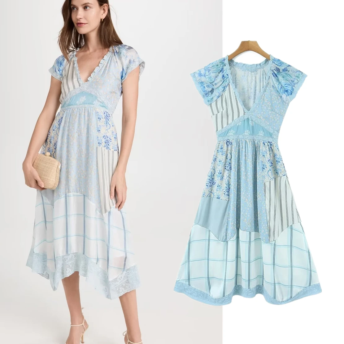 Женское платье в стиле пэчворк Jenny & Dave, элегантное платье-макси из каскадного материала во французском стиле, лето 2023