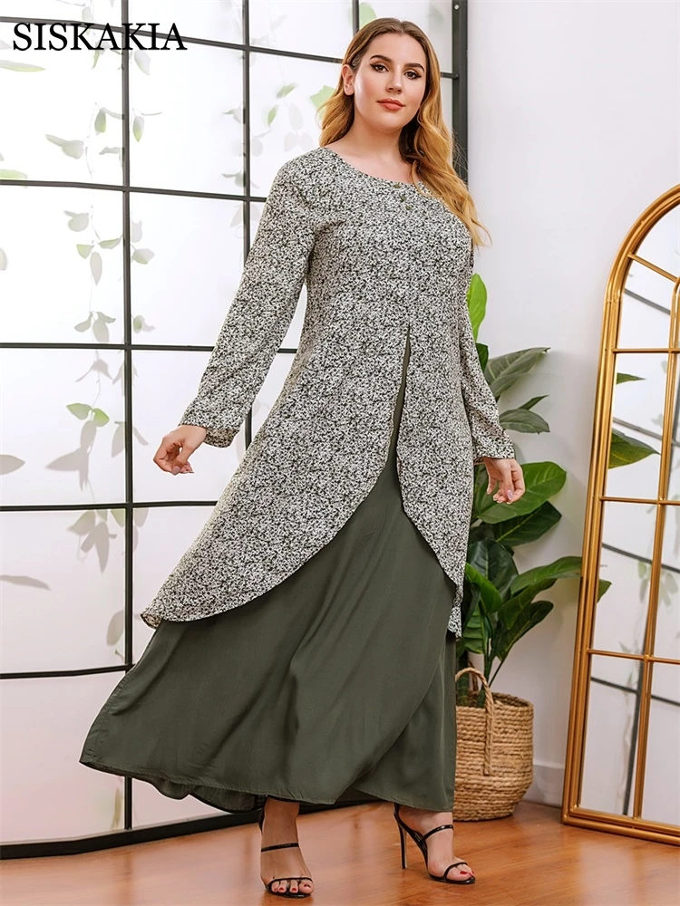 Женское платье из двух частей, весна-осень 2021, женское платье с длинным рукавом, Повседневное платье в стиле пэчворк, модное платье в арабско...